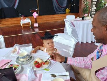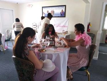 Located in the rear of the church - follow the balloons.
